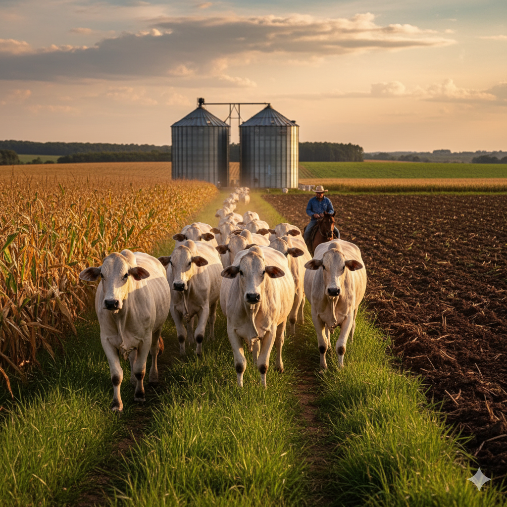 A lógica é simples: enquanto a lavoura melhora o solo e aumenta a oferta de forragem, a pecuária aproveita esse pasto de alta qualidade para elevar o ganho de peso por hectare. A rotação entre culturas e pastagens também reduz naturalmente pragas e doenças, diminui a necessidade de insumos e melhora a ciclagem de nutrientes. É um sistema mais sustentável, produtivo e competitivo.